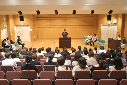 二部構成で一部は講堂で副校長先生と進路部、生徒保健部の先生の講話と質疑応答、二部はグループに分かれて小人数での座談会を行いました。